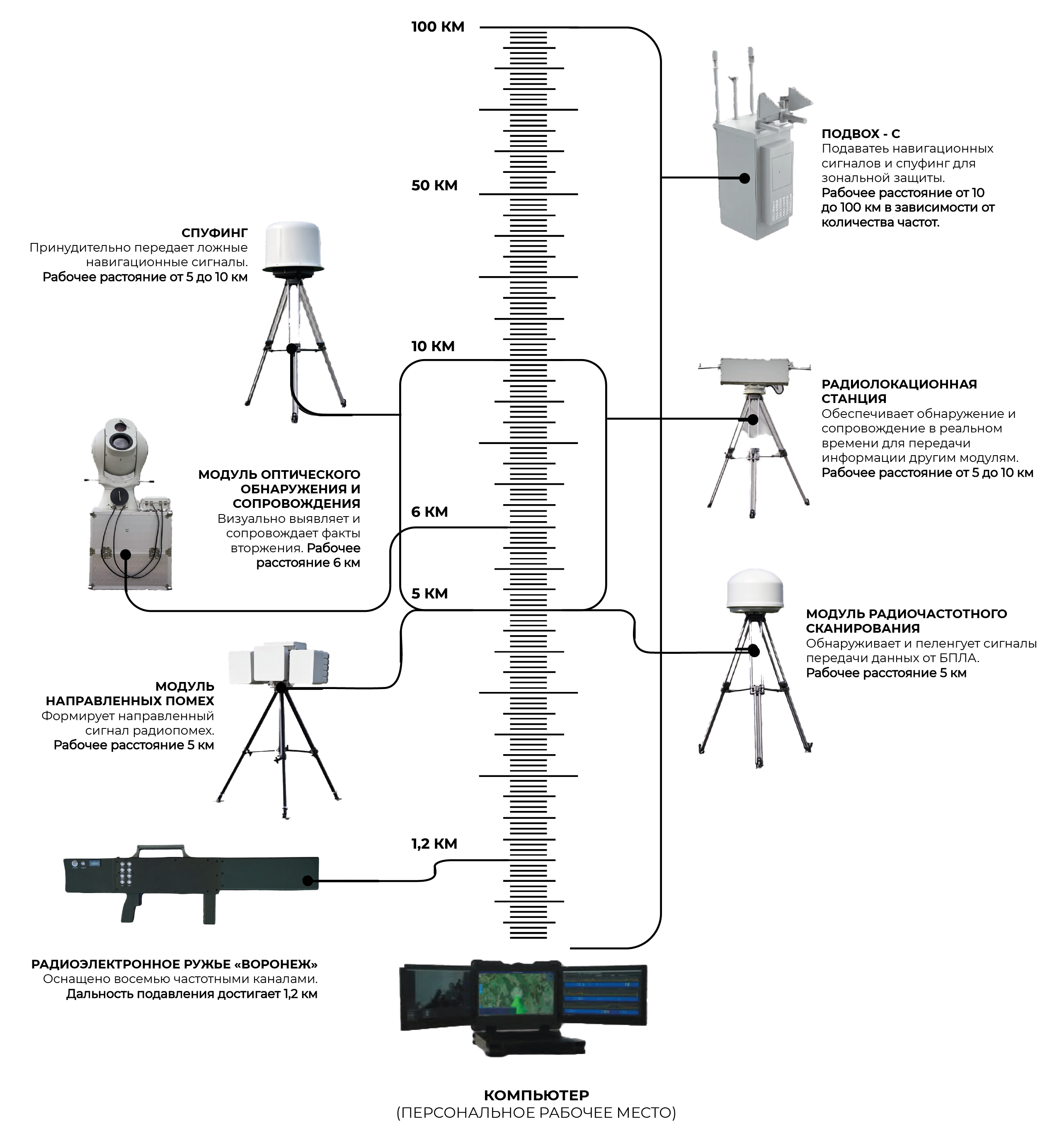 Дополнительно может укомплектоваться переносными изделиями РЭБ.
